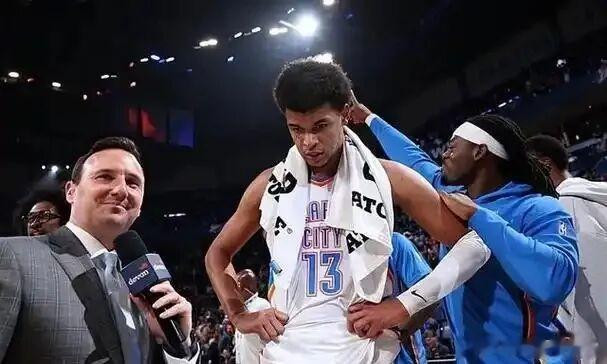 吉昂今年22岁,2022年首轮第11顺位被雷霆选中,本赛季他场均仅得4.4分和1.8个篮板。